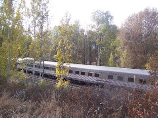 Where this road crosses the railroad tracks there were cars parked along both sides and more people with cameras. I decided to ask a question or two, so I pulled over and rolled down my window. "Excuse me, what's going on?" I asked.